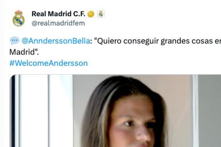 La sección femenina del club blanco anunció la contratación oficial de la futbolista sueca Bella Andersson, que llega a la capital a sus 19 años procedente del Hammarby I. F. La central, tal y como ha informado el Madrid en un comunicado, queda vinculada al Madrid durante las próximas cuatro temporadas.