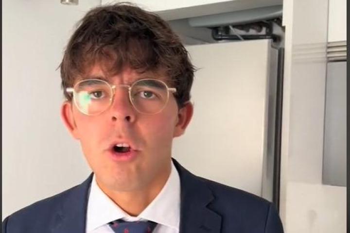 "Y aquí para fiesta: las gafas de fiesta. A las dos de la mañana tú no me ves con gafas de ver, tú a mí me vas a ver con estas pedazo de gafas", ha exclamado el tiktoker sacando del bolsillo izquierdo de la americana unas modernas gafas de sol.