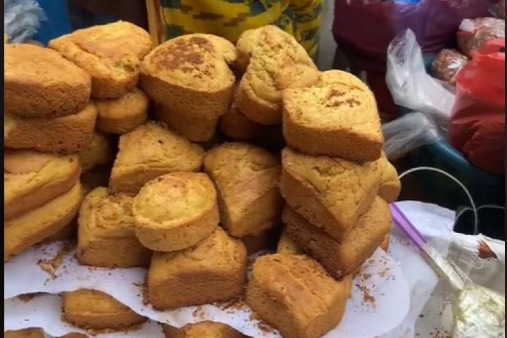 "Me dirigí al Makola Market y lo primero que encontré fue este puesto que vendía pound cake, un bizcocho de mantequilla delicioso y un clásico en mi casa, aunque en Guinea lo llamamos queq. Me costó 5 cedis", ha manifestado Raki enseñando el apetitoso dulce.