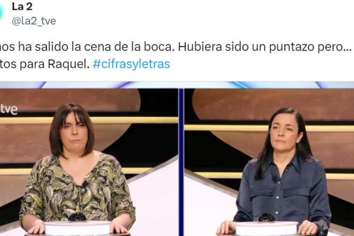 "Se nos ha salido la cena por la boca, hubiera sido un puntazo, pero... 10 puntos para Raquel", ha escrito el perfil oficial de La 2 en X, acumulando más de 5.000 'me gusta'.
