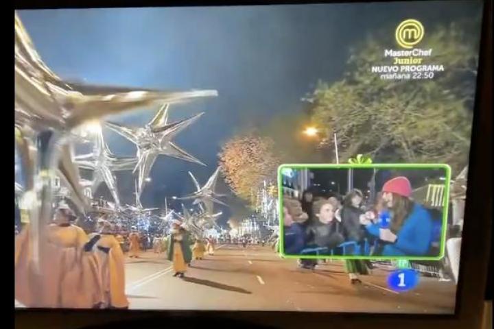 En un momento de la cabalgata la reportera de TVE se ha acercado a un grupo de niños con la intención de darle una chapa a uno de ellos. Cuando se ha puesto delante de una de las criaturas ha dicho: "Le voy a entregar mi chapa a este niño que va tan bien peinado esta noche".