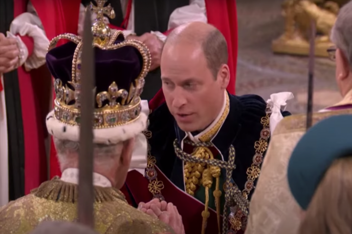 Se trata del momento en que el príncipe Guillermo se arrodilla delante de su padre y lee un breve texto. "¿Habéis visto al príncipe Guillermo en la coronación de su padre? Fijaos en esto", dice el experto.