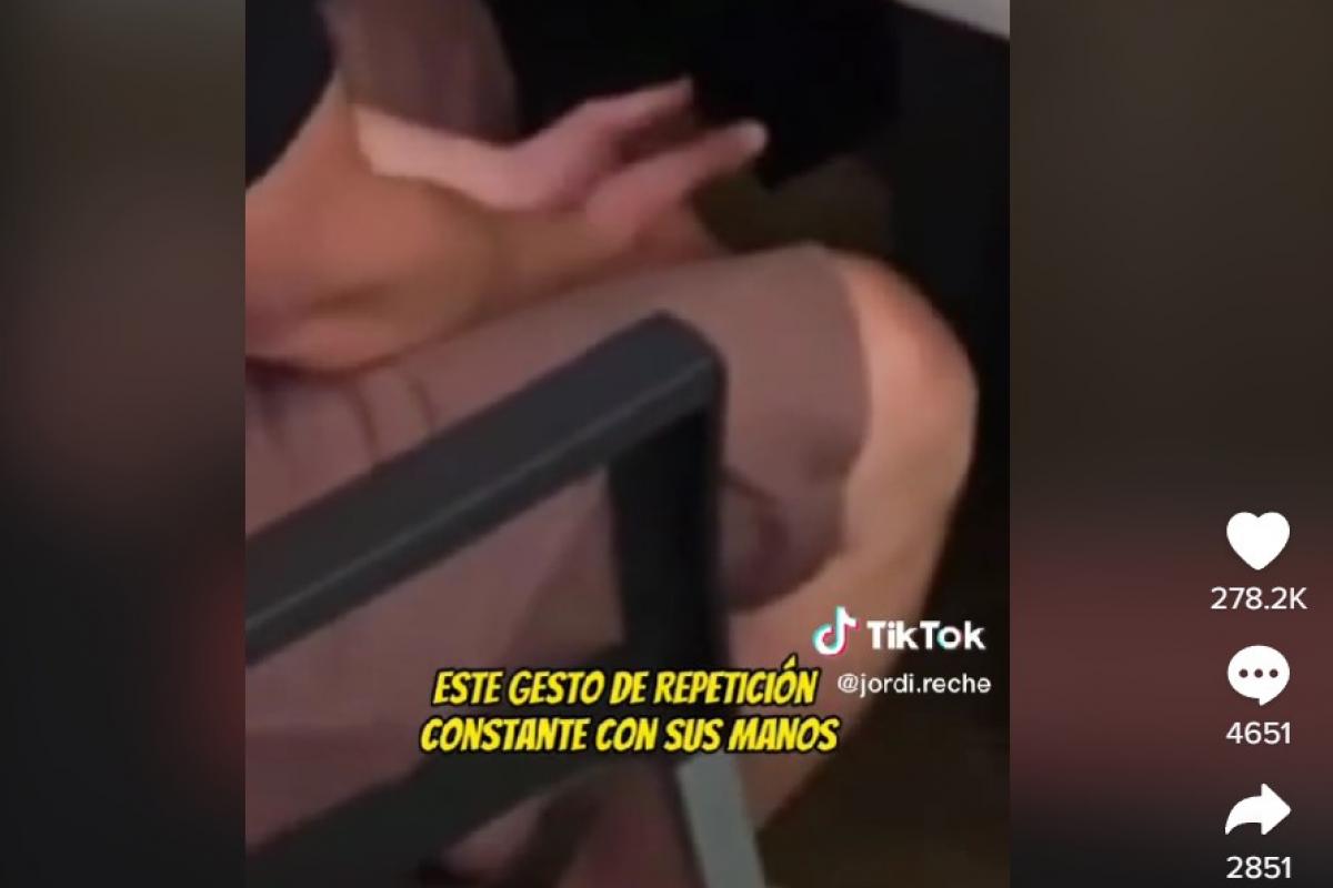 Reche analiza el vídeo en su cuenta de Tik Tok y asegura que el "lenguaje no verbal de él es evidente porque se ha caído con todo el equipo", pero acaba destacando el gesto con las manos.