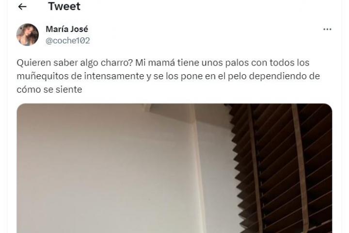 "¿Quieren saber algo charro? Mi mamá tiene unos palos con todos los muñequitos de 'Intensamente' y se los pone en el pelo dependiendo de cómo se siente", ha empezado explicando la joven.