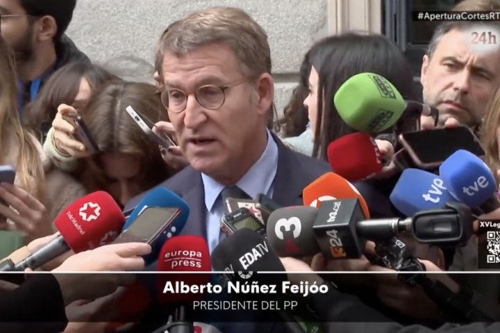 Arranca la XV legislatura en el Congreso de los Diputados en el que será el tercer mandato de Pedro Sánchez como presidente del Gobierno. A la entrada del hemiciclo, antes de la llegada de los reyes de España y de la princesa Leonor, Alberto Núñez Feijóo ha atendido a los medios.