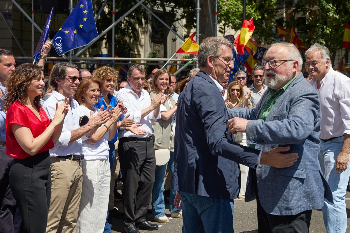 En esta ocasión, el líder popular, Núñez Feijóo ha estado en Madrid, arropado al igual que durante el sábado, por ilustres caras de los populares como José María Aznar, Ana Botella, Isabel Díaz Ayuso o Dolors Montserrat, que encabeza la lista del PP para los próximos comicios.