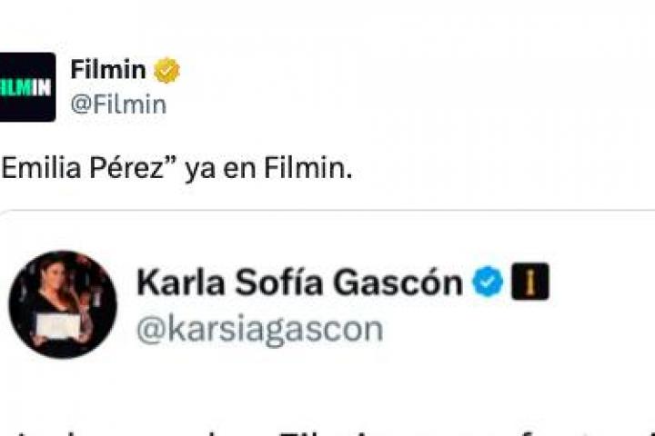 La plataforma de cine en línea Filmin ha fingido recuperar un tuit publicado en su cuenta por la actriz Karla Sofía Gascón en febrero de 2021 para anunciar el aterrizaje de Emilia Pérez, la última película de la interprete.