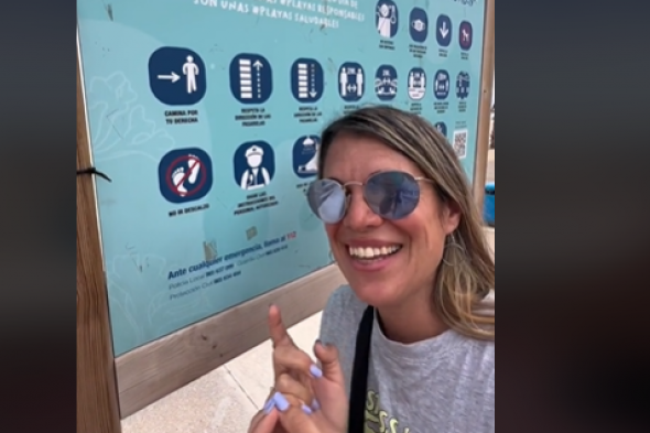 La usuaria de TikTok @thecoffeevantrip ha vuelto a España tras dos años fuera y en la playa de Campello, municipio costero de Alicante (Comunidad Valenciana) se ha encontrado con un cartel de normas y hay una en específico que le ha llamado mucho la atención.