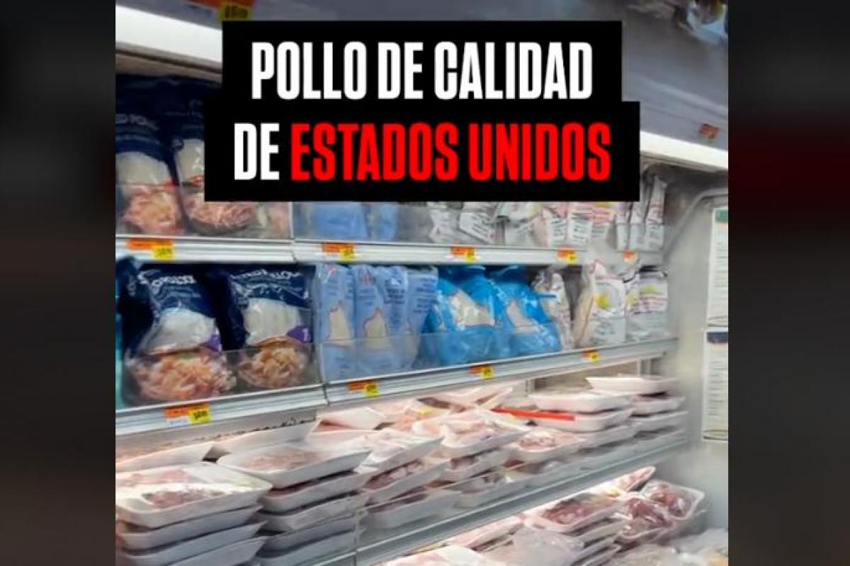 "Para que veáis esto todos los españoles porque esto es masivo, se supone que es pollo, el de Estados unidos y vaya sobrada. ¿Estás viendo esto? Si a esto se le considera pollo vaya tristeza", afirma el usuario.