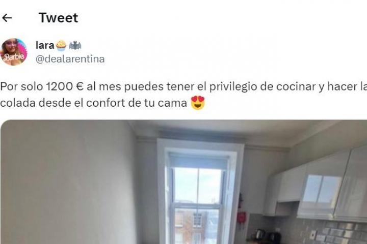 "Por solo 1200 € al mes puedes tener el privilegio de cocinar y hacer la colada desde el confort de tu cama 😍", ha escrito @dealarentina en un mensaje que en cinco días supera los 4.500 'me gusta'.