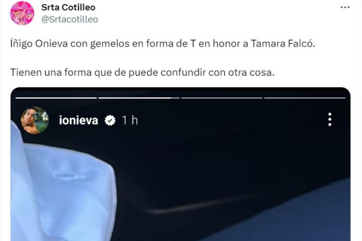 Como muestra, un tuit de la usuaria @Srtacotilleo, que ha destacado una publicación que el propio Onieva ha subido a sus stories de Instagram. Se trata de una foto de los gemelos que llevó y que tienen forma de letra 'T'.