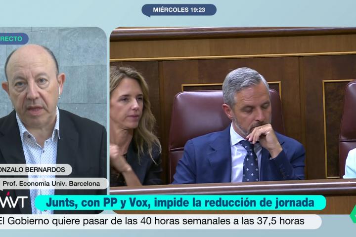 "En 2003, la jornada laboral anual tenía 1753 horas, y en 2024, 1746. Que en prácticamente 22 años solo se haya reducido 7 horas es una minucia", ha razonado Bernardos, que también trabajaba como profesor de Economía en la Universidad de Barcelona.