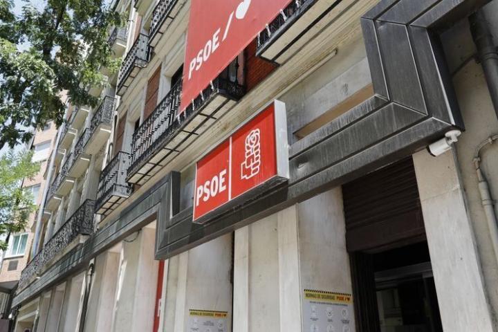 Graban el cartel que ha aparecido en un edificio en frente de la sede del PSOE en Madrid