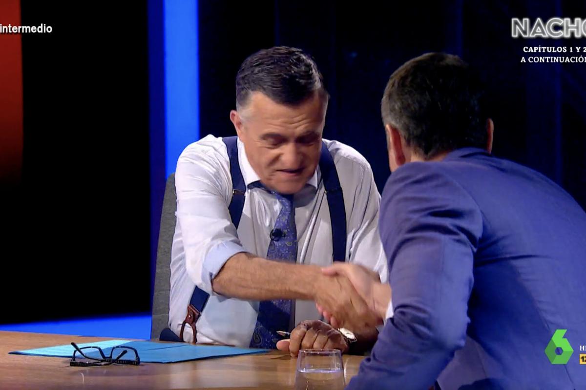 El Gran Wyoming interrumpe a Sánchez, le suelta esto y el presidente le acaba dando la mano