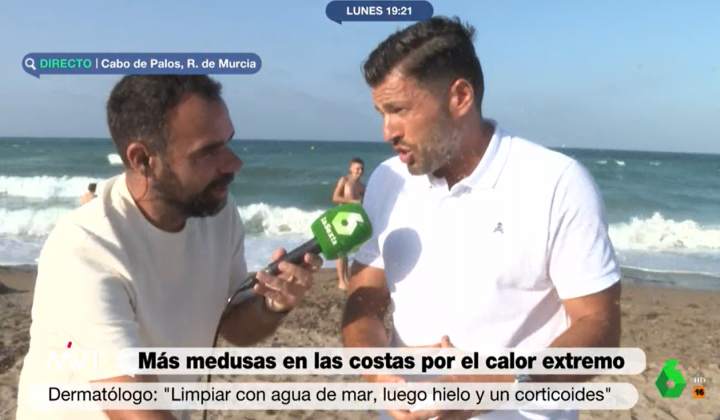 Con el verano llegan, cómo no, las recomendaciones para tratar picaduras de medusa. Y un reportero de laSexta ha protagonizado un divertido momento durante una conexión en directo en la que explicaba precisamente eso con un dermatólogo.