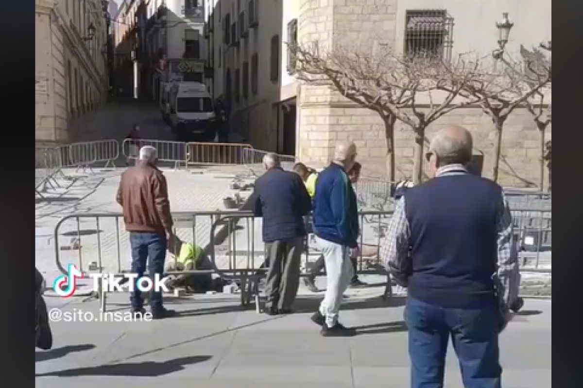 Y es que la grabación muestra precisamente eso. Hasta diez hombres mayores con sus manos a la espalda o apoyados en las vallas que delimitan la zona contemplando cómo trabajan los obreros.