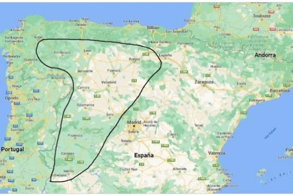 Dentro de esa zona señalada, se encuentran Ponferrada, León, Zamora, Valladolid, Palencia, Burgos, Salamanca, Ávila, Cáceres o Mérida, entre otras.