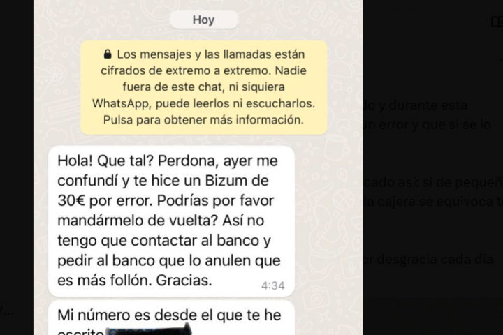 Hace un Bizum por error, le manda un WhatsApp para que se lo devuelva y la respuesta es para verla
