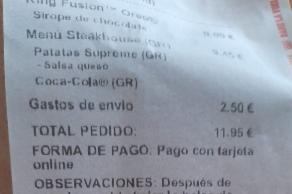El cliente, al pedir comida en una conocida cadena de comida rápida, agregó lo siguiente en el apartado observaciones: "Después de traer la comida bajar la bolsa de basura que hay en la puerta y no subir por el ascensor que es solo para los vecinos".