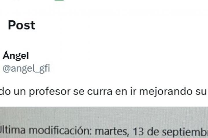 "Cuando un profesor se curra en ir mejorando su asignatura año a año❤️", ha escrito en evidente tono irónico junto a un pantallazo en el que se ve el mensaje: "Última modificación, 13 de septiembre de 2011".