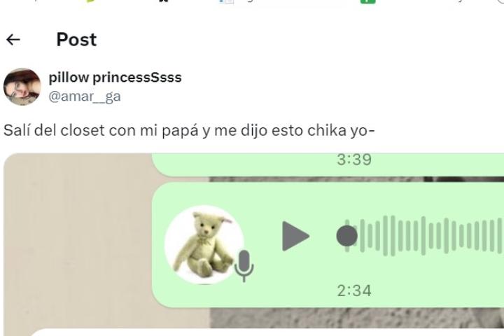 La respuesta del hombre la ha publicado en X la usuaria @amar__ga junto al mensaje: "Salí del closet con mi papá y me dijo esto chika yo-".