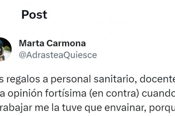 Hace esta reflexión sobre los regalos a sanitarios y docentes y la reacción de la gente no tiene desperdicio