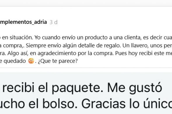 Entre los que no son de recibo está el que ha compartido en la red social Threads complementos_adria, que ha publicado el mensaje que le envió una clienta al recibir un regalo que le había hecho por cortesía.