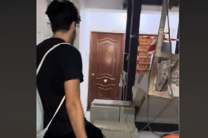 Él vive en un quinto y cada día tiene que subir por un edificio que parece sacado de una película de terror. A simple vista, cualquiera diría que está a medio hacer. Agujeros por todos lados, vigas, bloques... Subir las escaleras da auténticos escalofríos y solo es apto para valientes (y hay escalones en los que no se puede pisar).