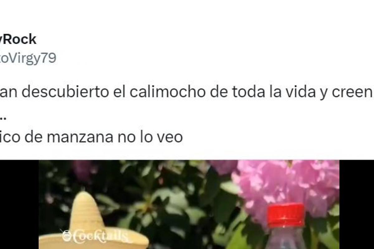 El tuit ha acumulado en apenas unos días más de 833.000 reproducciones y más de 7.000 'me gusta'. El vídeo original ha ganado 2,1 millone de visitas. "Bien, has descubierto el calimocho... Ahora quítale la copa y la rodaja de manzana y ya lo tienes", ha expresado el usuario @mrtortillachip.
