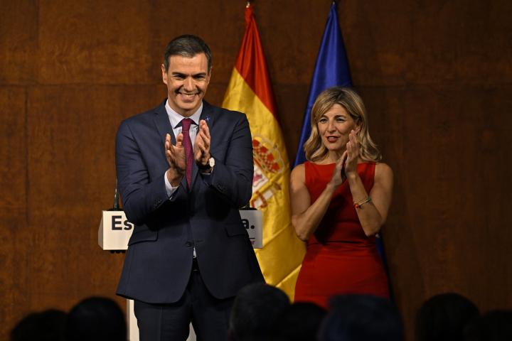 El líder del PSOE, Pedro Sánchez, y la dirigente de Sumar, Yolanda Díaz, firmaron este este martes en el Museo Reina Sofía de Madrid un pacto para continuar durante otra legislatura con el gobierno de coalición.