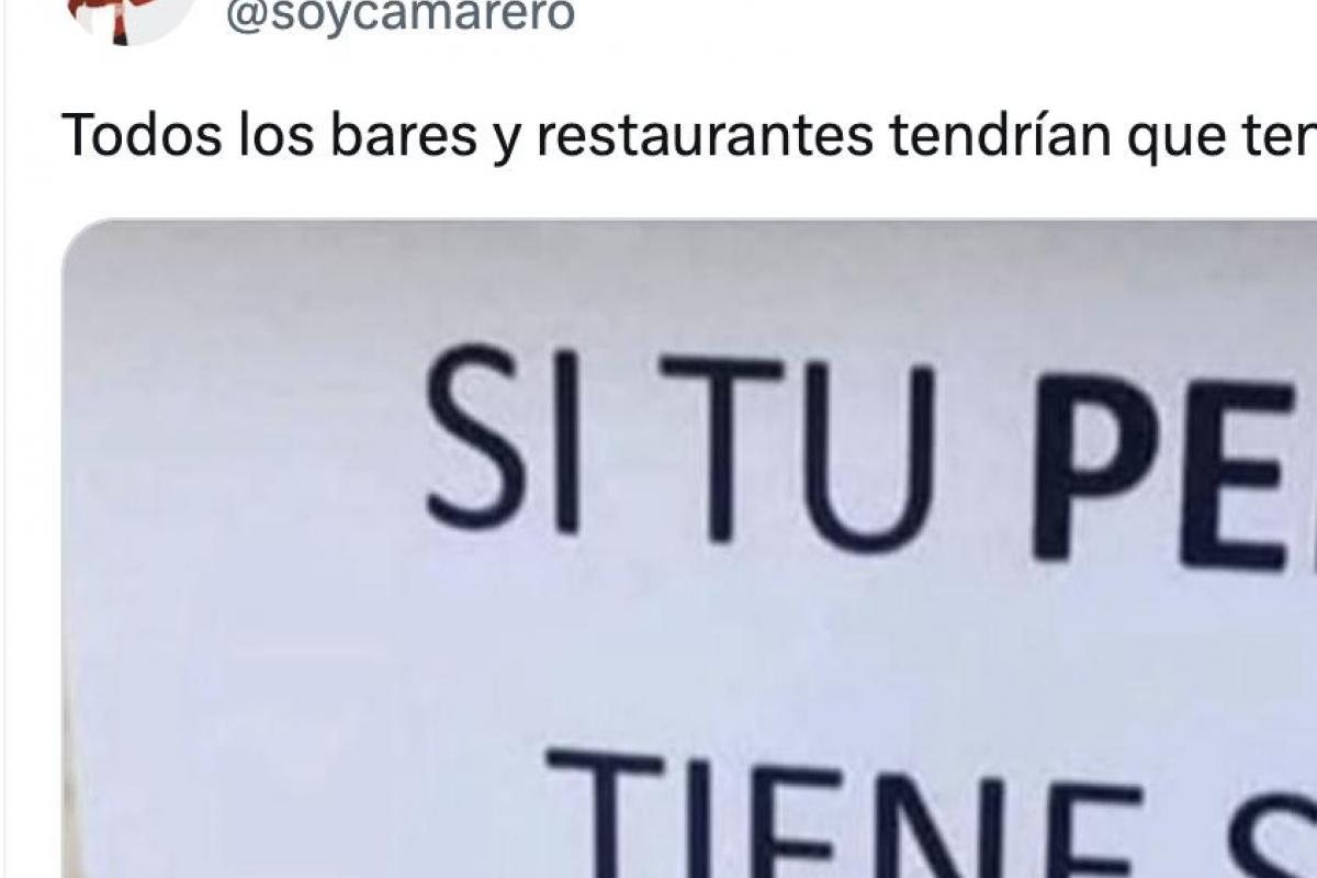 "Todos los bares y restaurantes tendrían que tener este cartel", pide Soy Camarero en su perfil de X. Y como siempre, en los comentarios, se ha generado la polémica porque muchos piden que por qué no se extiende eso a los niños, por ejemplo.
