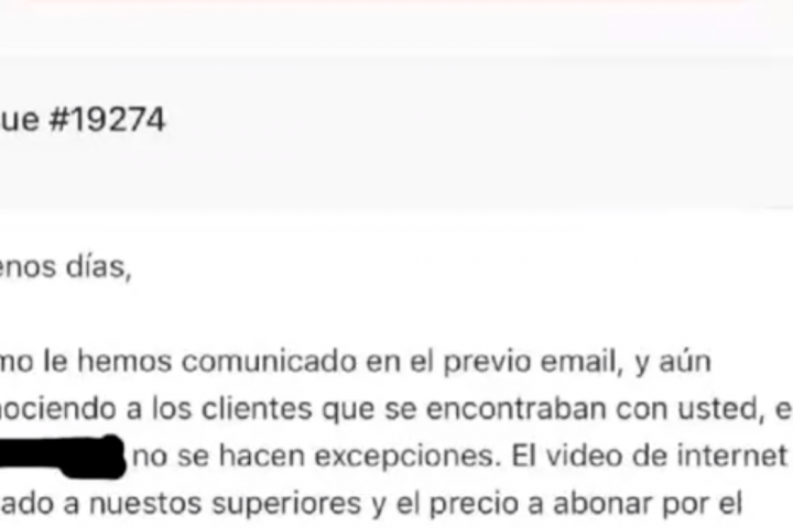 "Buenos días, como hemos comunicado previo email, y aún conociendo a los clientes que se encontraban con usted, en [nombre del hotel] no se hacen excepciones. El vídeo de internet ha llegado a nuestros superiores y el previo a abonar por el desperfecto de la bañera son 980 euros", reza el mensaje que mandado la empresa.