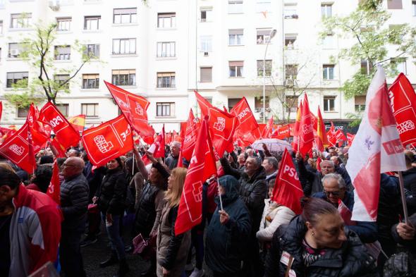 Durante la jornada de este sábado miles de personas se han reunido a las puertas de la sede del Partido Socialista en Madrid, en la calle Ferraz. El objetivo principal de la misma, transmitir un mensaje de apoyo al actual presidente de Gobierno, Pedro Sánchez, y a su esposa, Begoña Gómez.