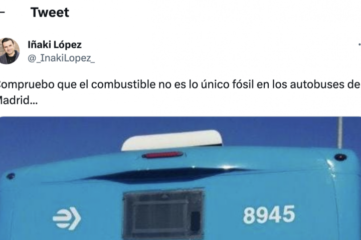 A una semana de las elecciones, López ha visto que en la parte trasera de algunos buses de Madrid hay un anuncio electoral de La Falange. "Compruebo que el combustible no es lo único fósil en los autobuses de Madrid...", ha afirmado.