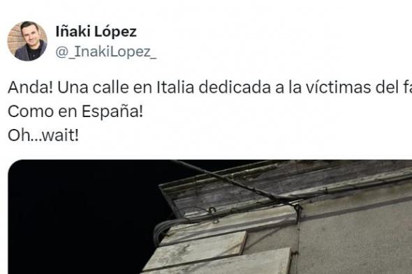 "Anda! Una calle en Italia dedicada a la víctimas del fascismo. Como en España! Oh…wait!", ha publicado el comunicador junto a una foto en la que se puede ver como la calle se llama "via vittime del fascismo".