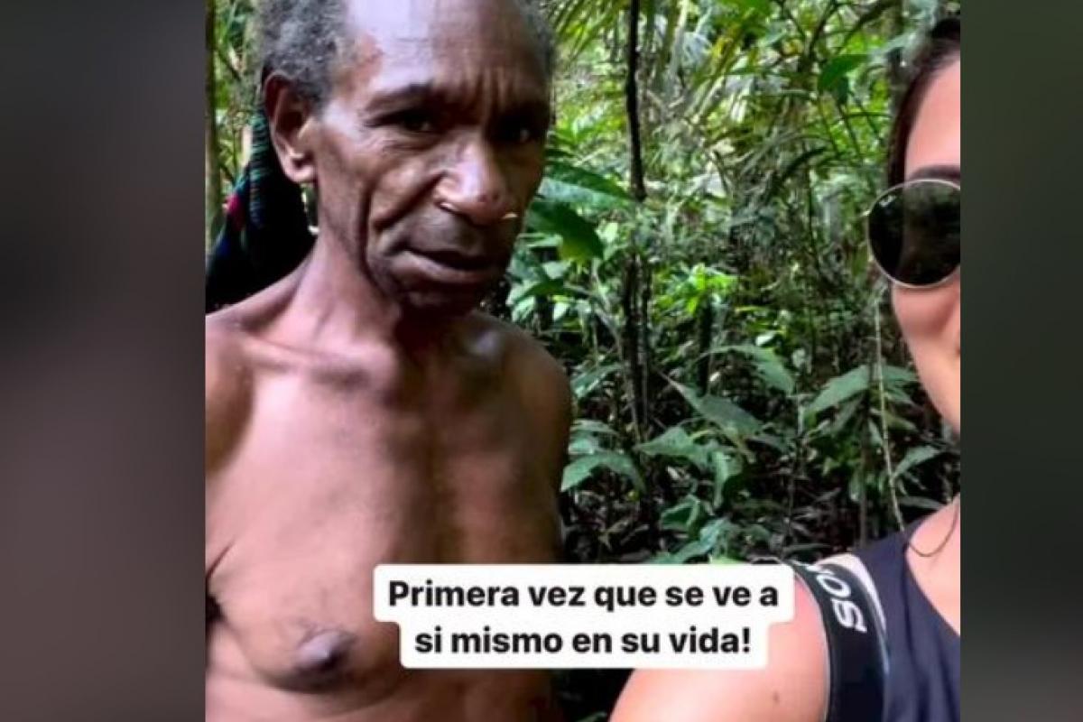 Una influencer enseña el vídeo en el que un anciano indígena se ve la cara por primera vez