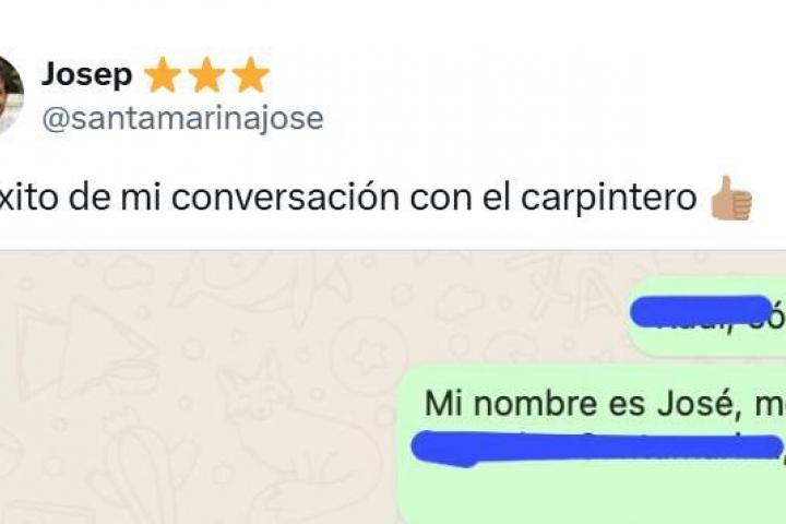 El tuitero Josep (@santamarinajose) ha subido a su cuenta de la red social X, anteriormente conocida como Twitter, una imagen de la surrealista conversación que ha tenido por WhatsApp con un carpintero.