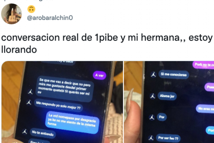 La usuaria @arobaralchin0 ha difundido la conversación que inició un chico con su hermano para ligar con ella. "Sé que me vas a decir que no, pero mira, me gustaste desde el primer momento que te vi", comienza.
