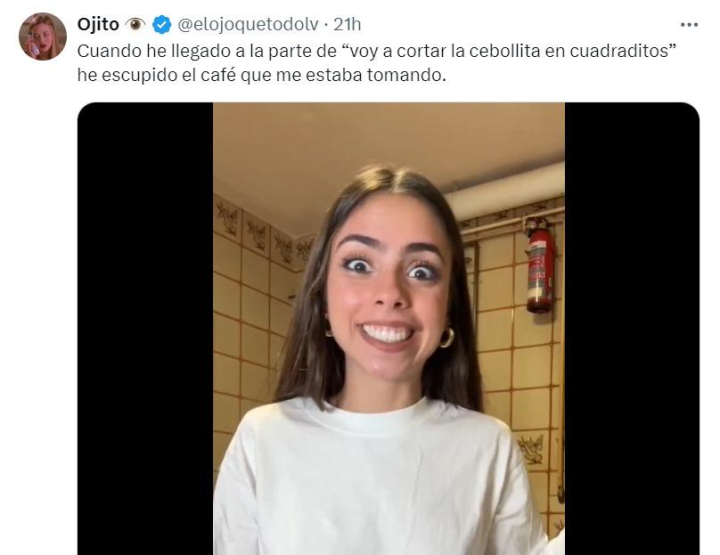 "Cuando he llegado a la parte de "voy a cortar la cebollita en cuadraditos" he escupido el café que me estaba tomando", ha escrito la tuitera, una reacción con la que han coincidido muchos de los tuiteros.
