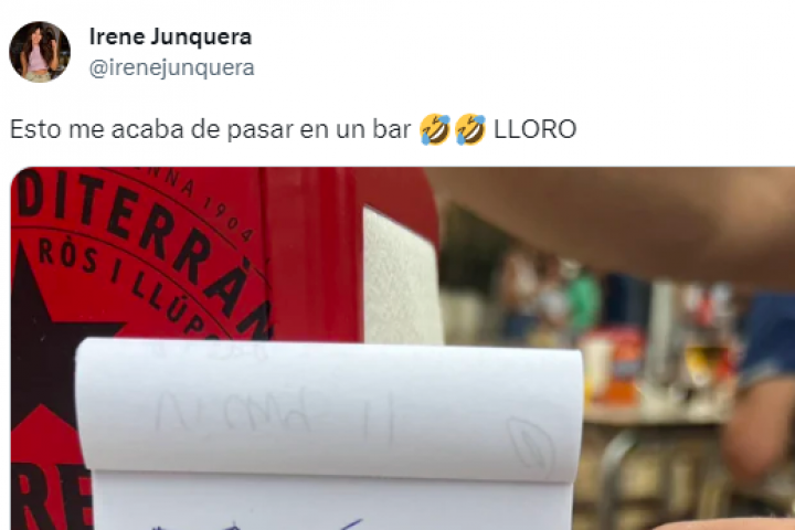 "Esto me acaba de pasar en un bar 🤣🤣 LLORO", ha escrito en un tuit, que ha acompañado con la imagen de una hoja de papel en la que se puede leer el siguiente mensaje que le habían dejado: "¿Está fichado Mbappé? ¡No se lo digo a nadie!".