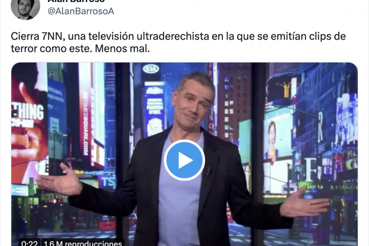 "Cierra 7NN, una televisión ultraderechista en la que se emitían clips de terror como este. Menos mal", ha señalado Barroso. En el vídeo se puede ver a Cantó haciendo una parodia de la canción de la abeja Maya.