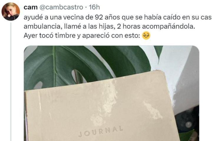 Después de todo este bonito y humano detalle, la anciana ha querido corresponderla con una nota que le dejó en la puerta de su casa después de tocar el timbre. "Ayer tocó timbre y apareció con esto: 🥺", ha escrito al joven.