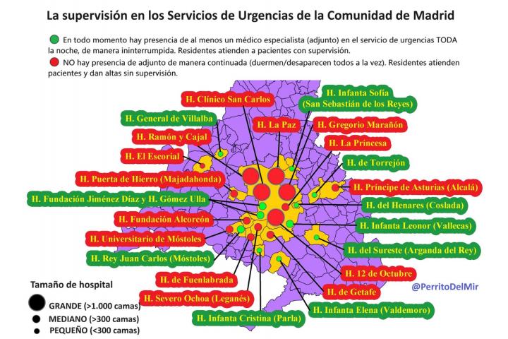 Son 14 los hospitales públicos de la Comunidad de Madrid señalados por miles de médicos que denuncian que los residentes de primer año están atendiendo ellos solos a los pacientes en los servicios de Urgencias Generales, una práctica ilegal que pone en riesgo la vida de muchas personas.