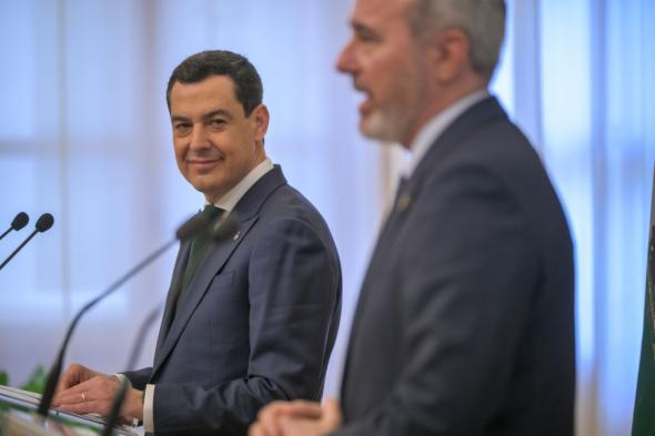 El presidente andaluz ha dedicado numerosas menciones indirectas críticas a María Jesús Montero, pero ha reclamado "respeto" tras escuchar las declaraciones del presidente aragonés sobre su "atractivo".