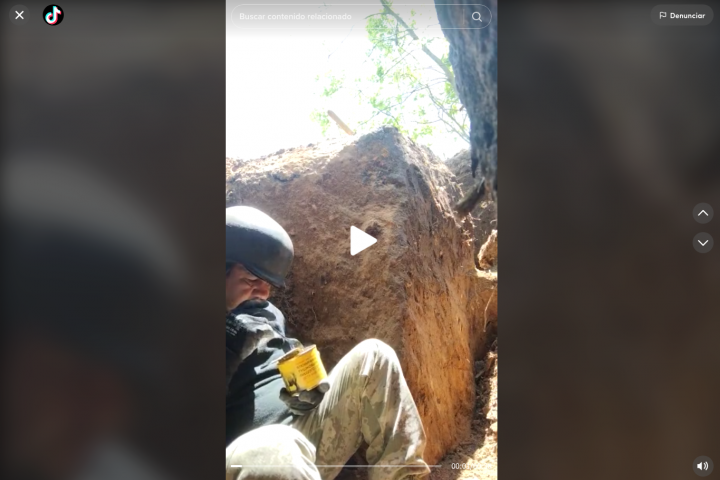 Es uno de los vídeos que más se han visto en las últimas horas en TikTok y no es para menos. La publicación dura 38 segundos y en ella se puede ver a un hombre agazapado detrás de una roca y comiendo una lata de comida.