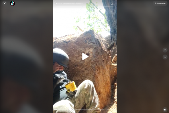Es uno de los vídeos que más se han visto en las últimas horas en TikTok y no es para menos. La publicación dura 38 segundos y en ella se puede ver a un hombre agazapado detrás de una roca y comiendo una lata de comida.