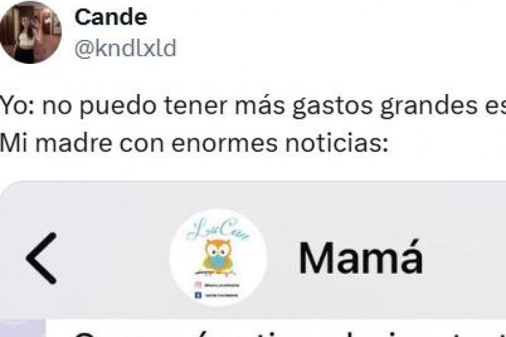 Este es el caso de la usuaria de X @kndlxld, quien ha compartido en la red social que no puede "tener más gastos grandes este mes". Sin embargo, a continuación ha agregado: "Mi madre con enormes noticias".