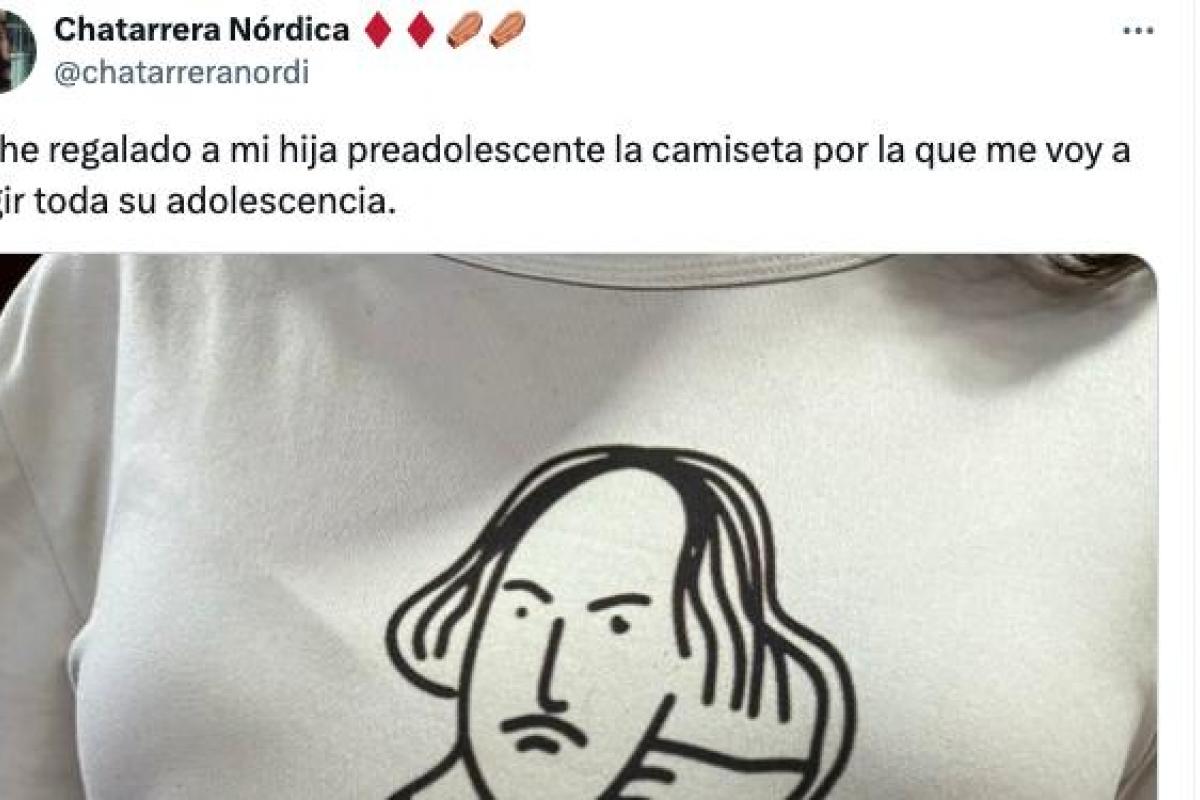 "Le he regalado a mi hija preadolescente la camiseta por la que me voy a regir toda su adolescencia", ha escrito la tuitera. En la imagen que ha adjuntado se puede ver como en la camiseta está el retrato del escritor inglés William Shakespeare junto al siguiente mensaje.