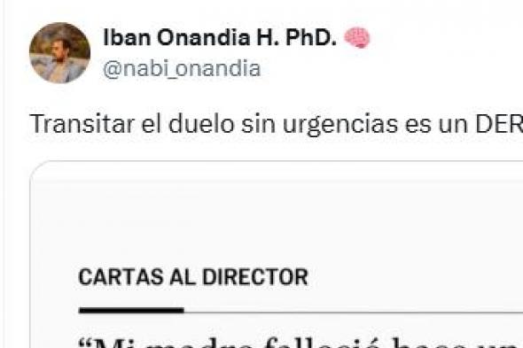 "La muerte también nos transforma la vida. Todos nos merecemos pasar un duelo digno. La sociedad debe dejar sitio también a la tristeza. Transitar el duelo sin urgencias debería ser un derecho", ha concluido, llevándose el aplauso de un sinfín de usuarios.