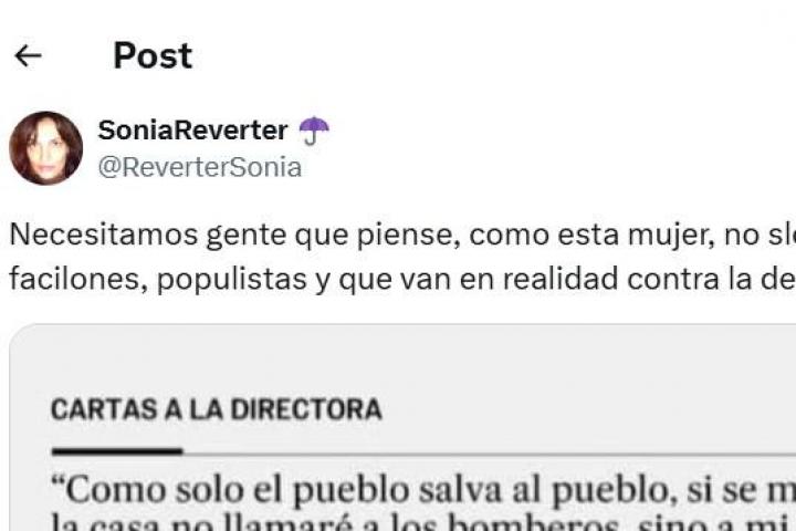 La carta la ha compartido ahora en X la usuaria @ReverterSonia junto al mensaje: "Necesitamos gente que piense, como esta mujer, no eslóganes vacíos, facilones, populistas y que van en realidad contra la democracia".